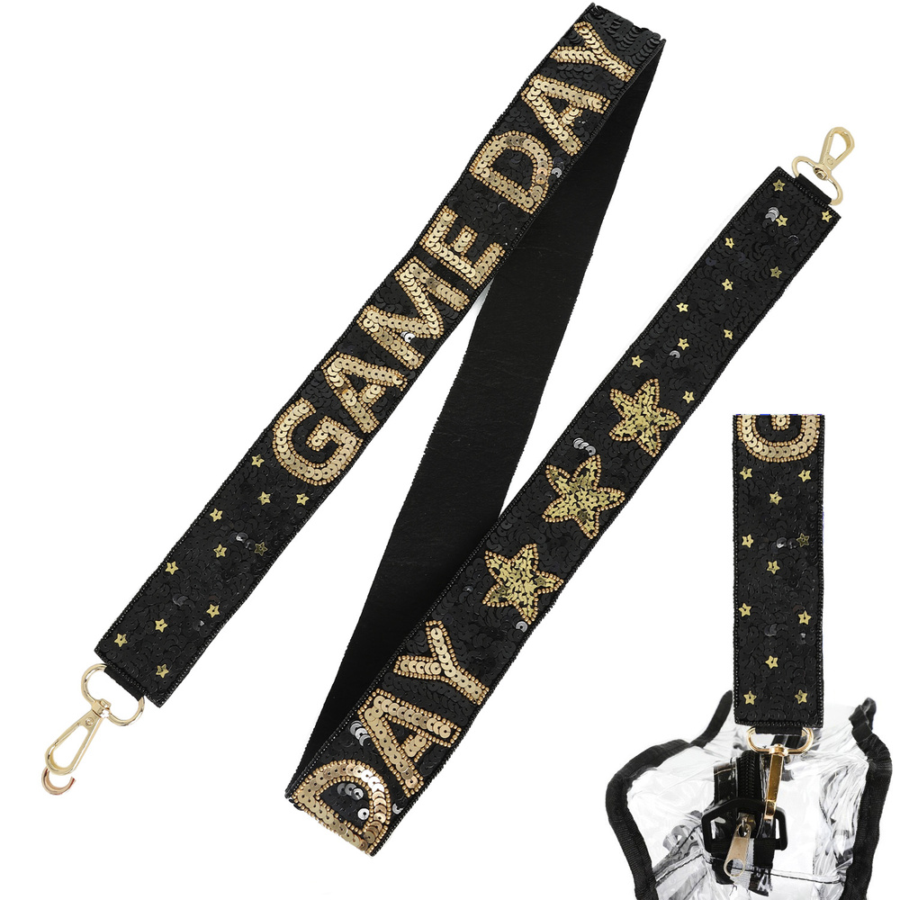 GAME DAY STAR PATTERN LETTER DETAIL BEADED SEQUIN EMBELLISHED ADJUSTABLE BAG STRAP WITH LOBSTER CLAW CLASP