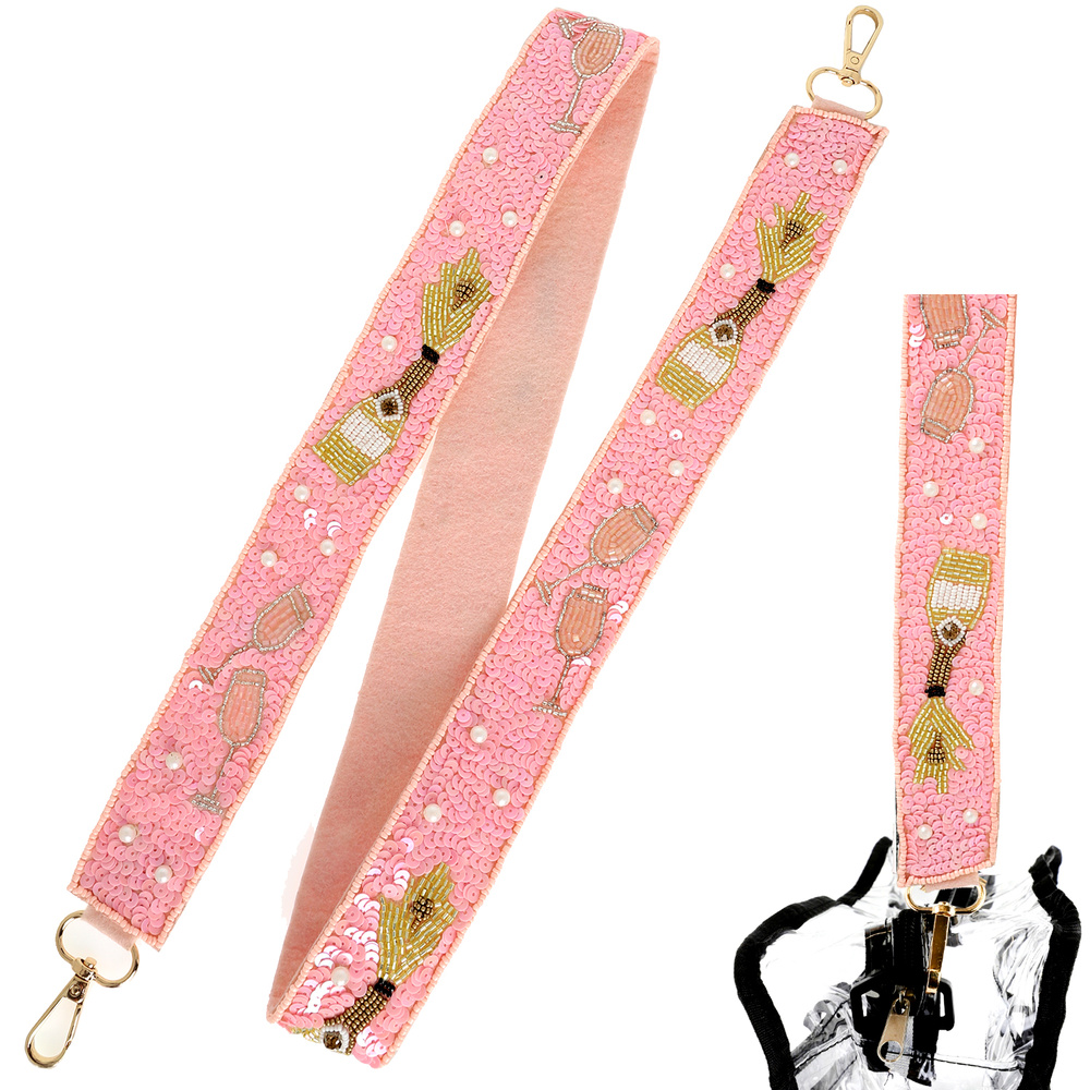 CHAMPAGNE GLASS TOAST TWO-TONE BAG STRAP WITH LOBSTER CLAW CLASP IN GOLD-TONE METAL