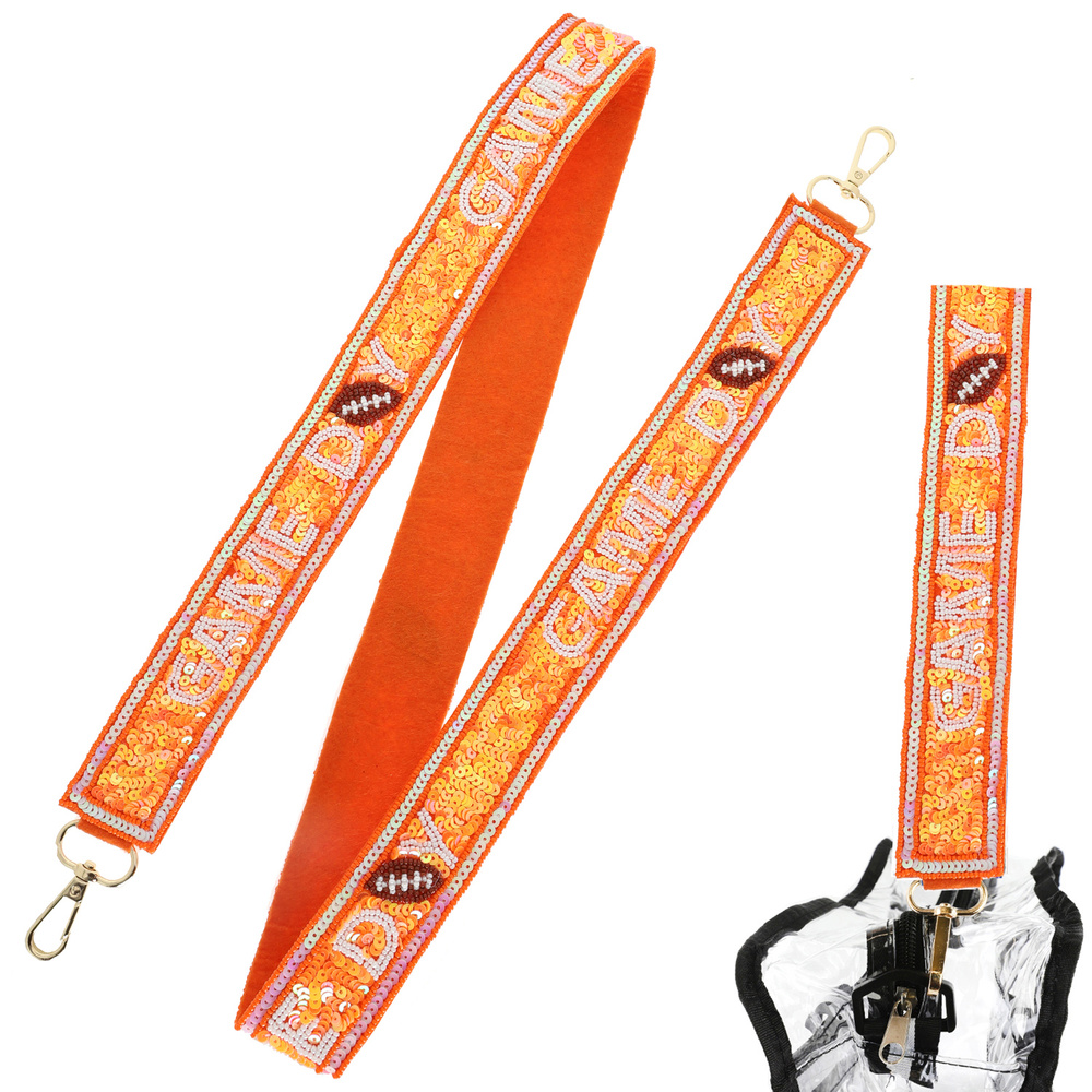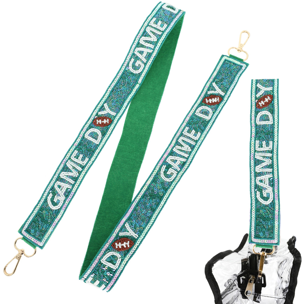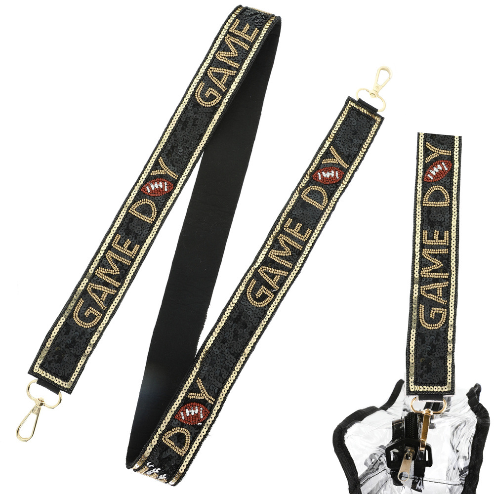 "GAME DAY" LETTERING MIX BEADED EMBROIDERY EMBELLISHED FOOTBALL SHOULDER BAG STRAP WITH LOBSTER CLAW CLASP IN GOLD-TONE METAL