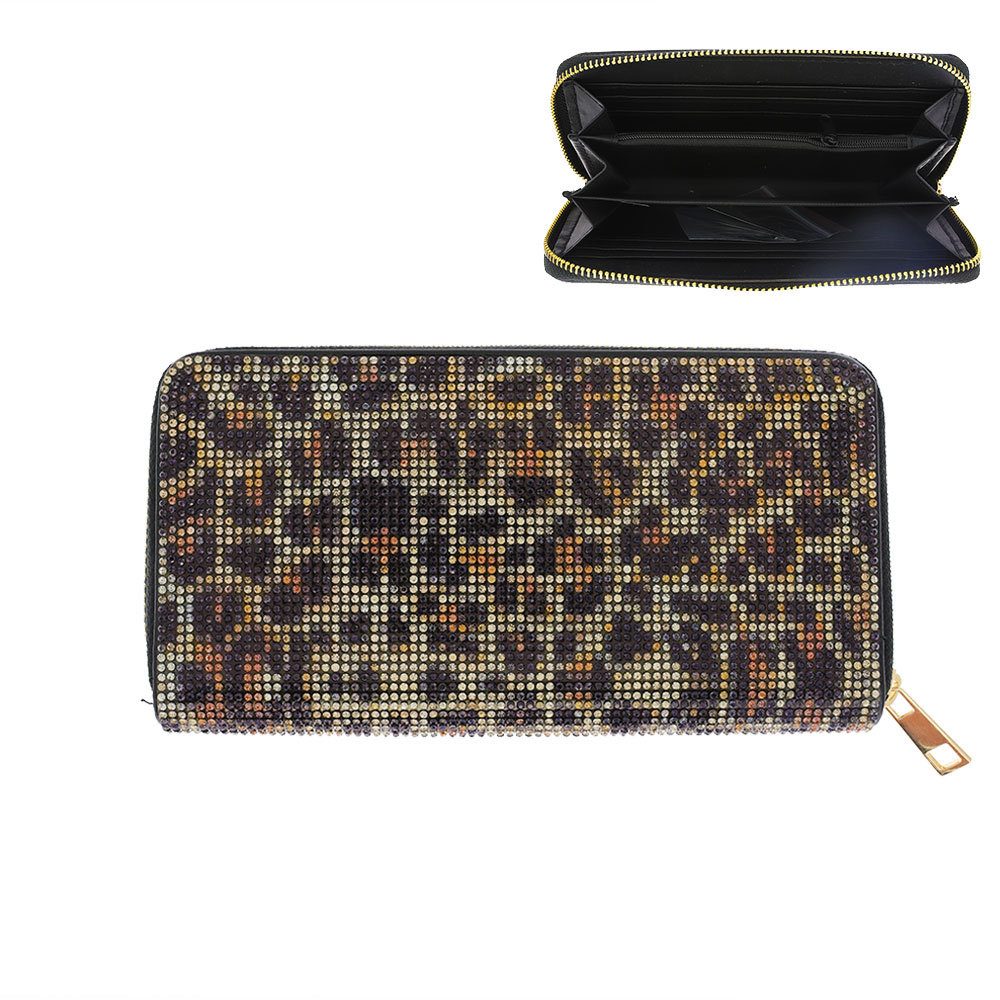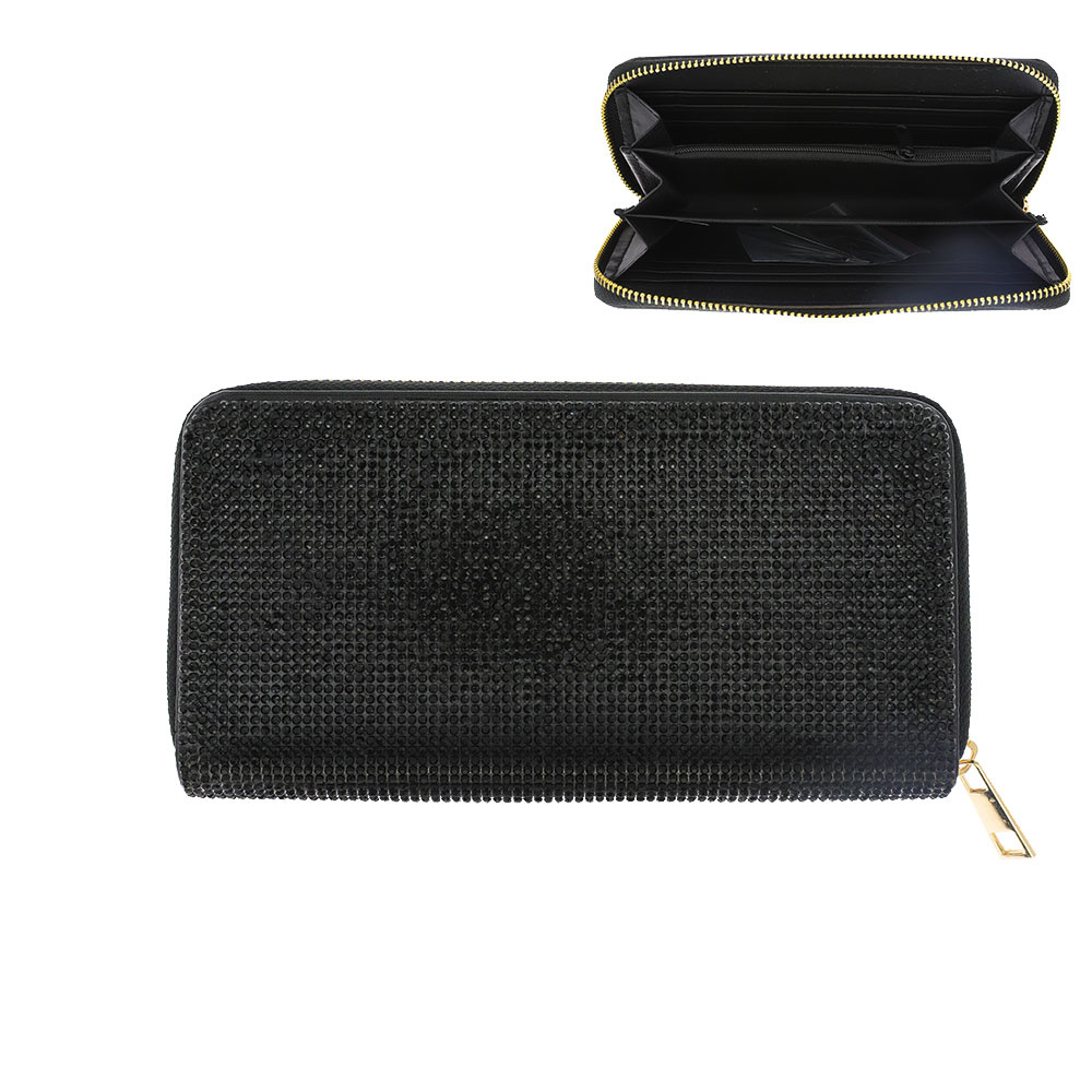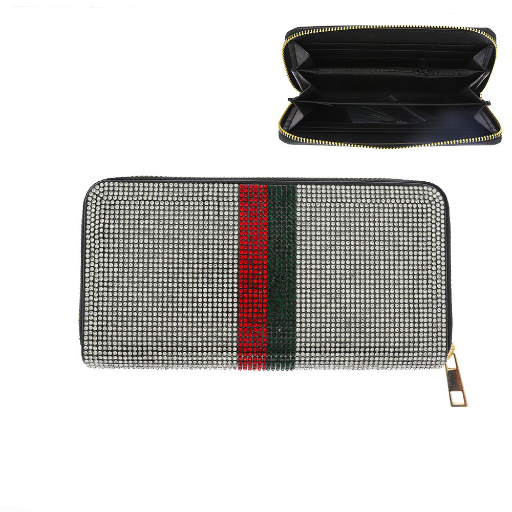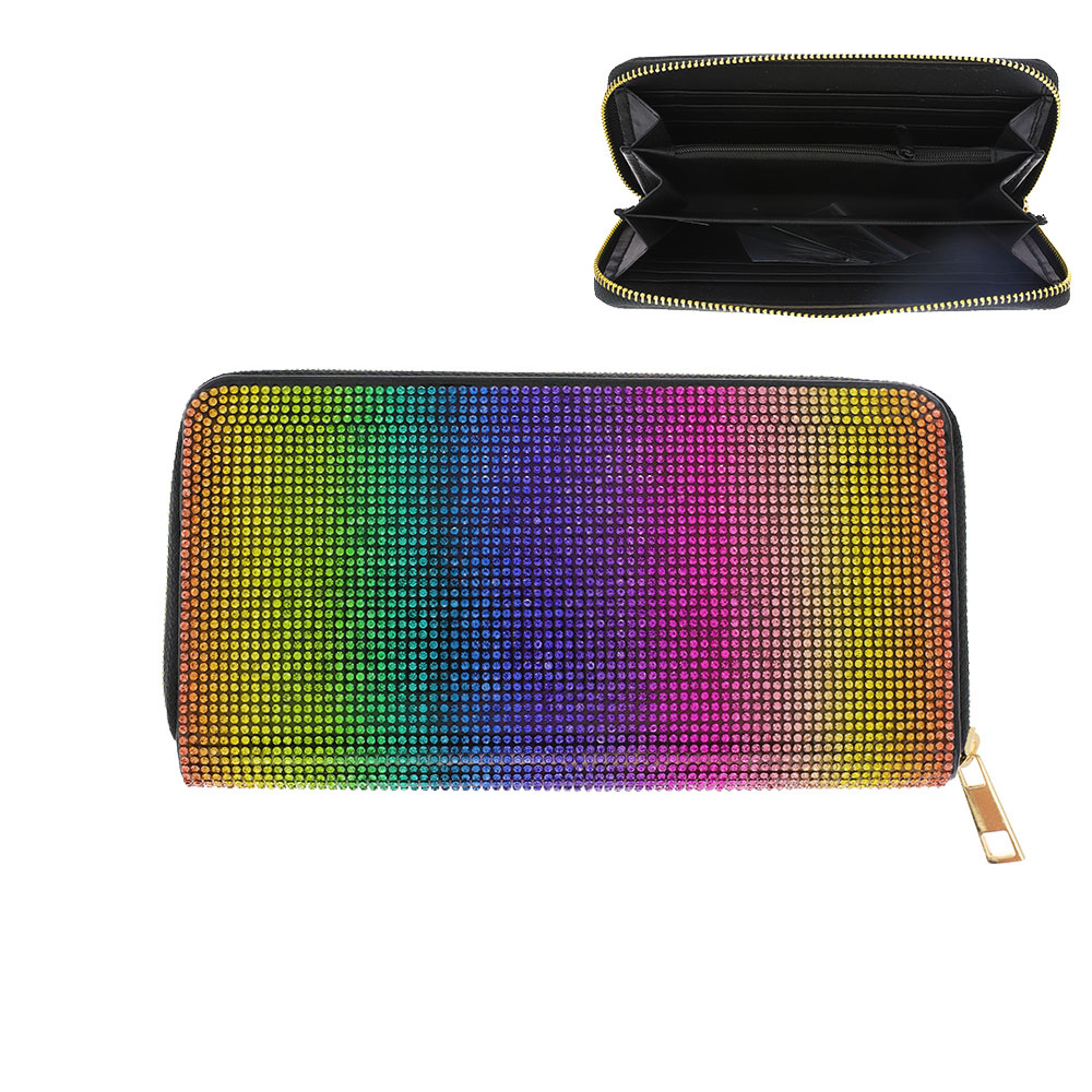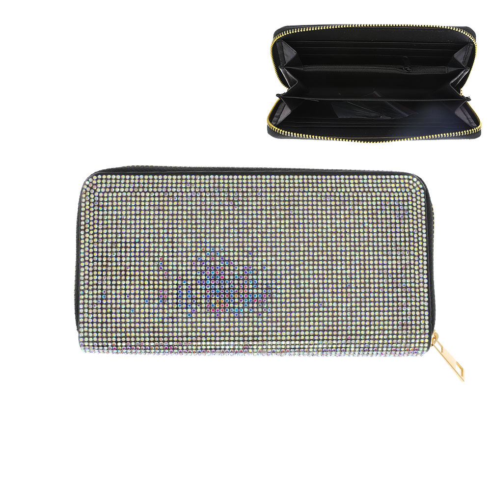 CRYSTAL RHINESTONE ACCORDION ZIP WALLET COIN BAG