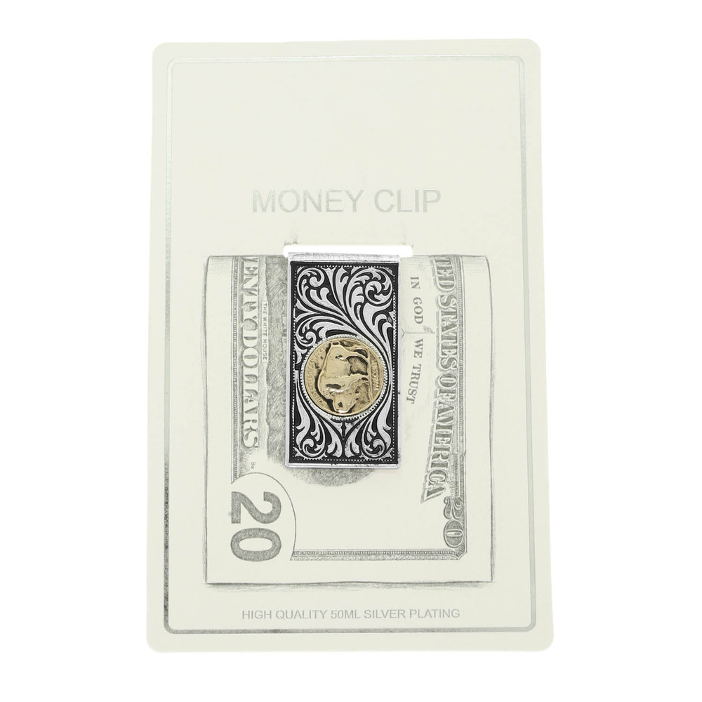 WESTERN TWO-TONE SCROLL WORK BUFFALO COIN MONEY CLIP