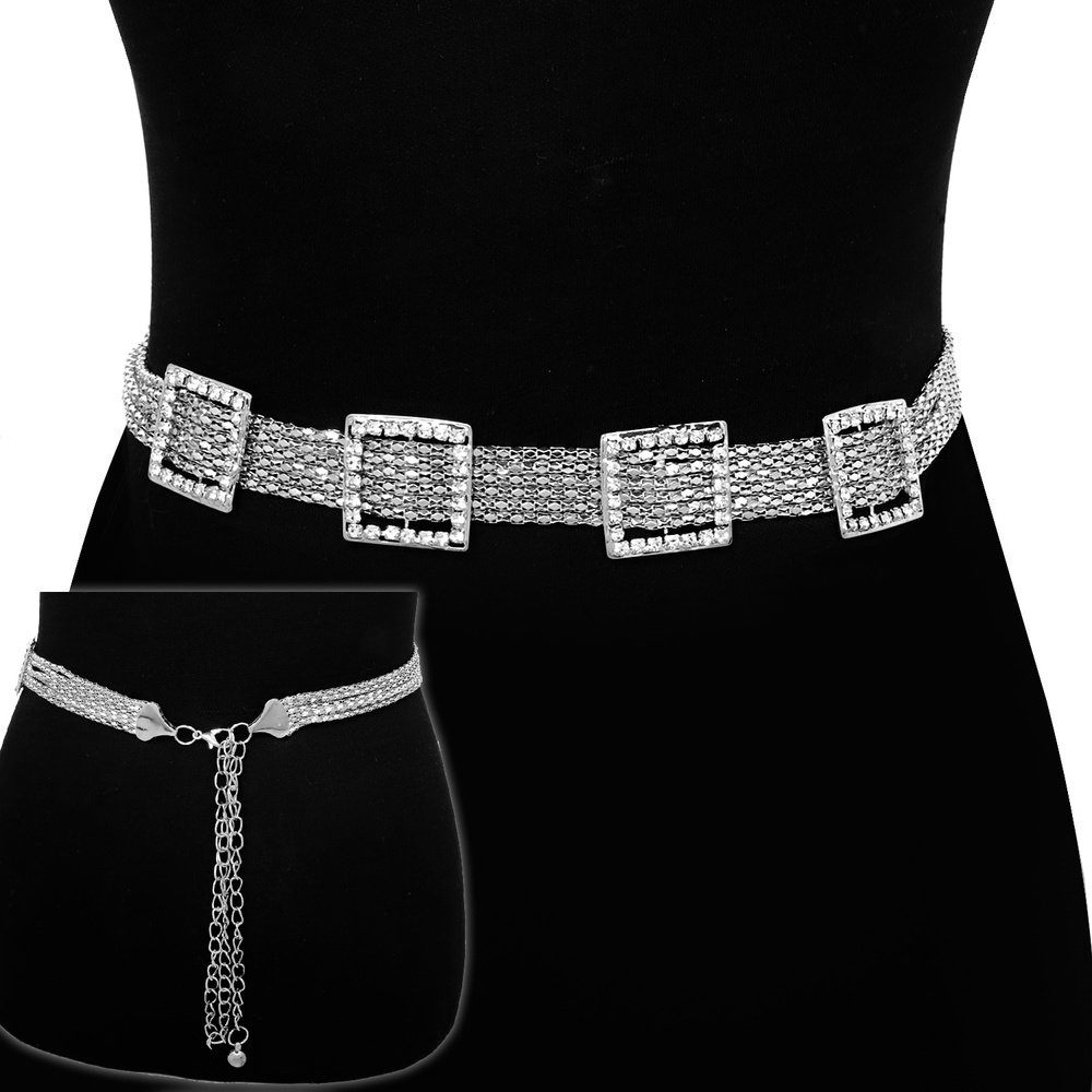 Crystal Rhinestone One Size Mesh Waist Chain Belt With Clasp Closure