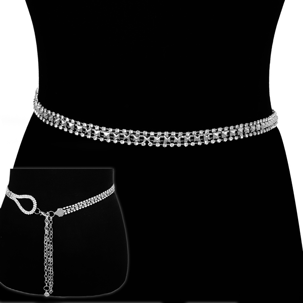 Crystal Rhinestone One Size Teardrop Waist Chain Belt With Clasp Closure
