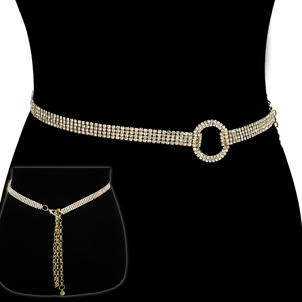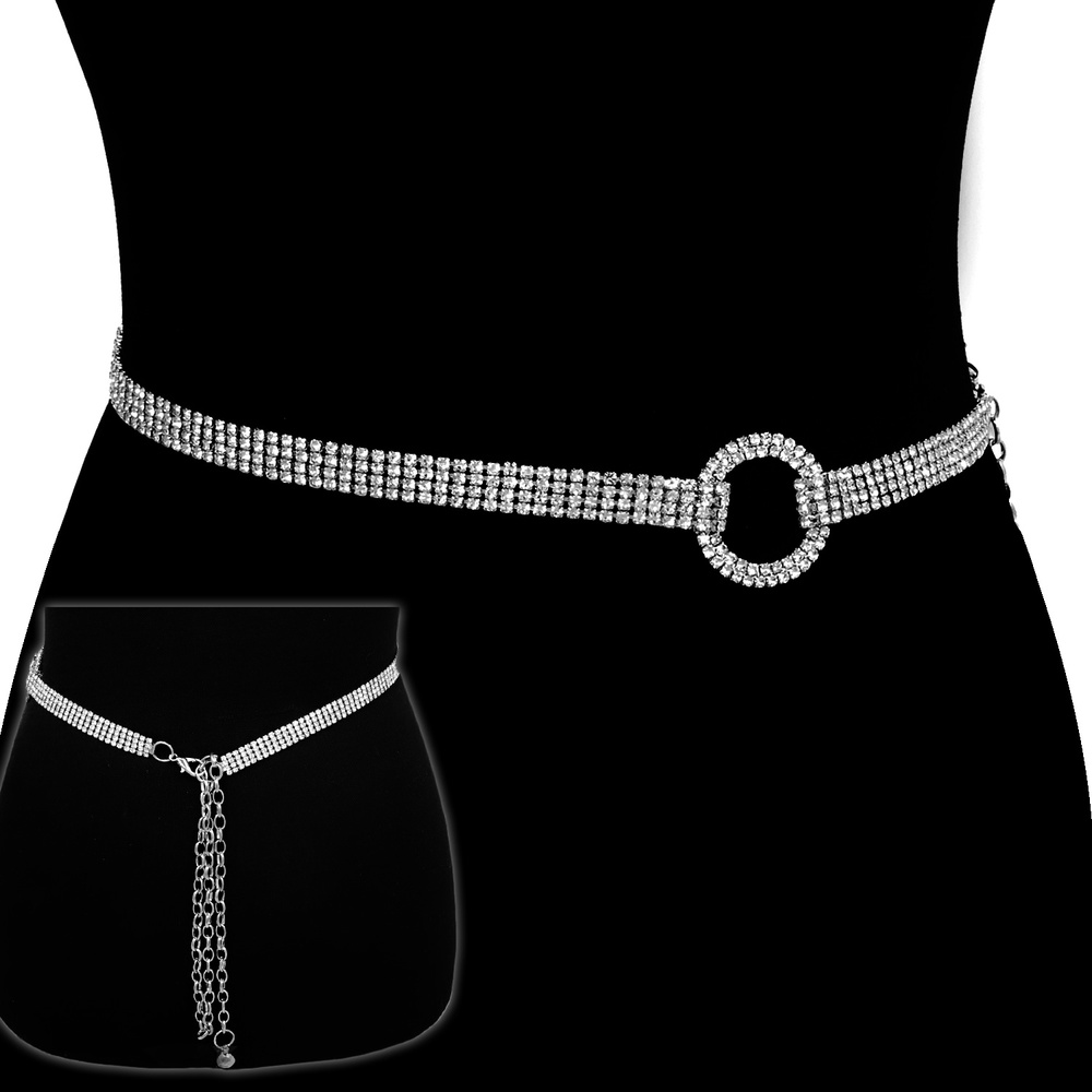 Crystal Rhinestone One Size Open Circle Waist Chain Belt With Clasp Closure