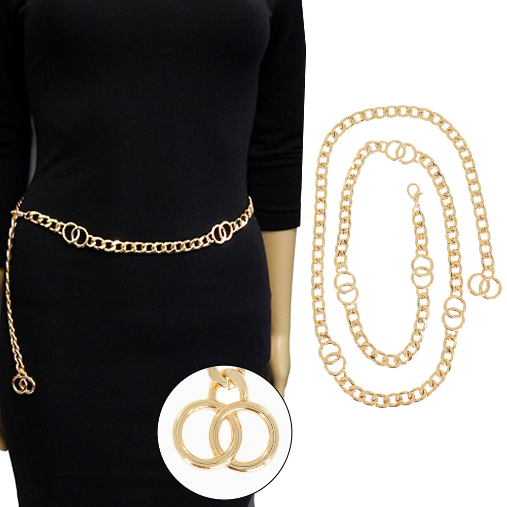 One Size Double Circle Cuban Chain Link Waist Belt With Clasp Closure