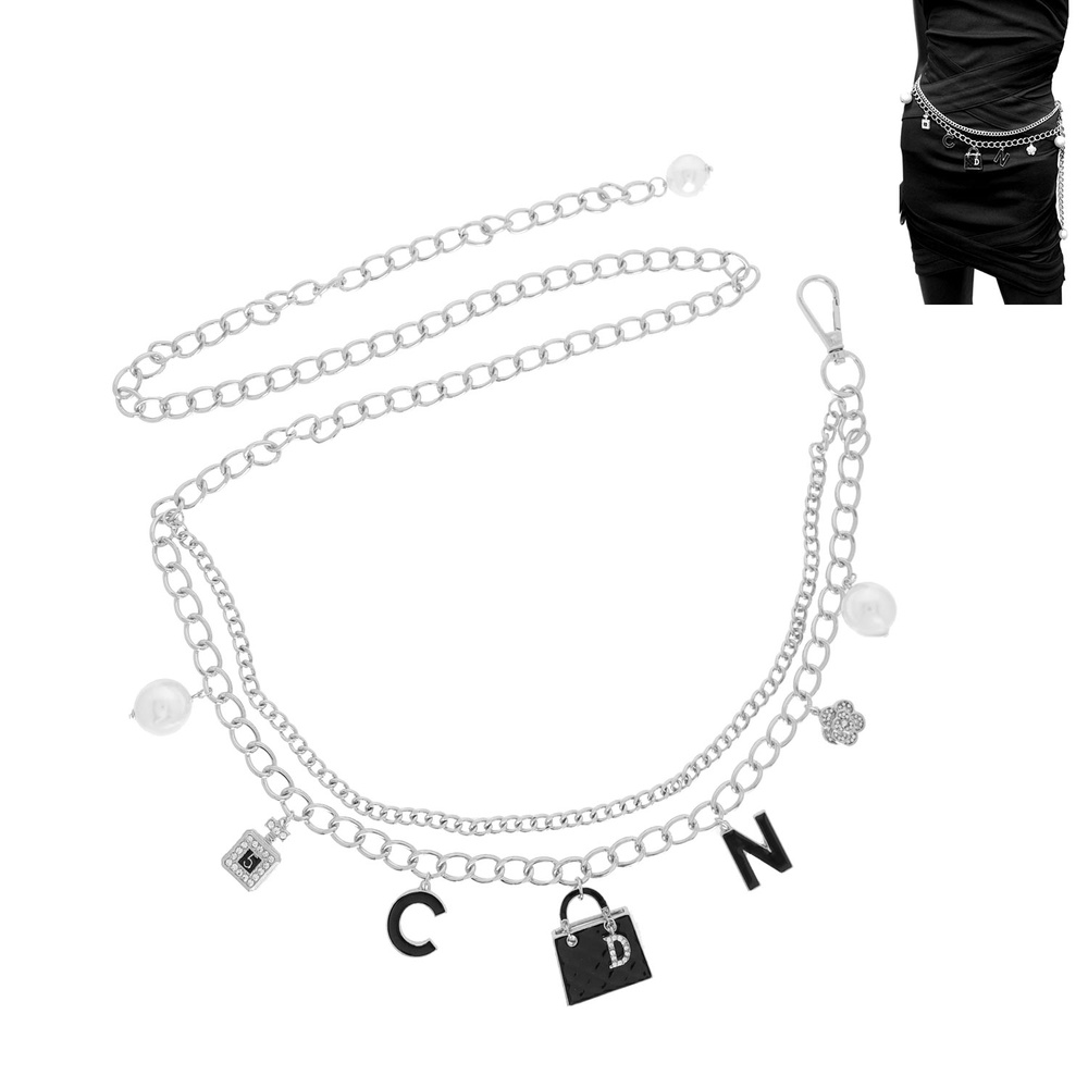 FASHIONISTA ONE SIZE CRYSTAL RHINESTONE ENAMEL COATED MULTI STRAND CHAIN LINK MULTI CHARM WAIST BELT WITH CLASP CLOSURE
