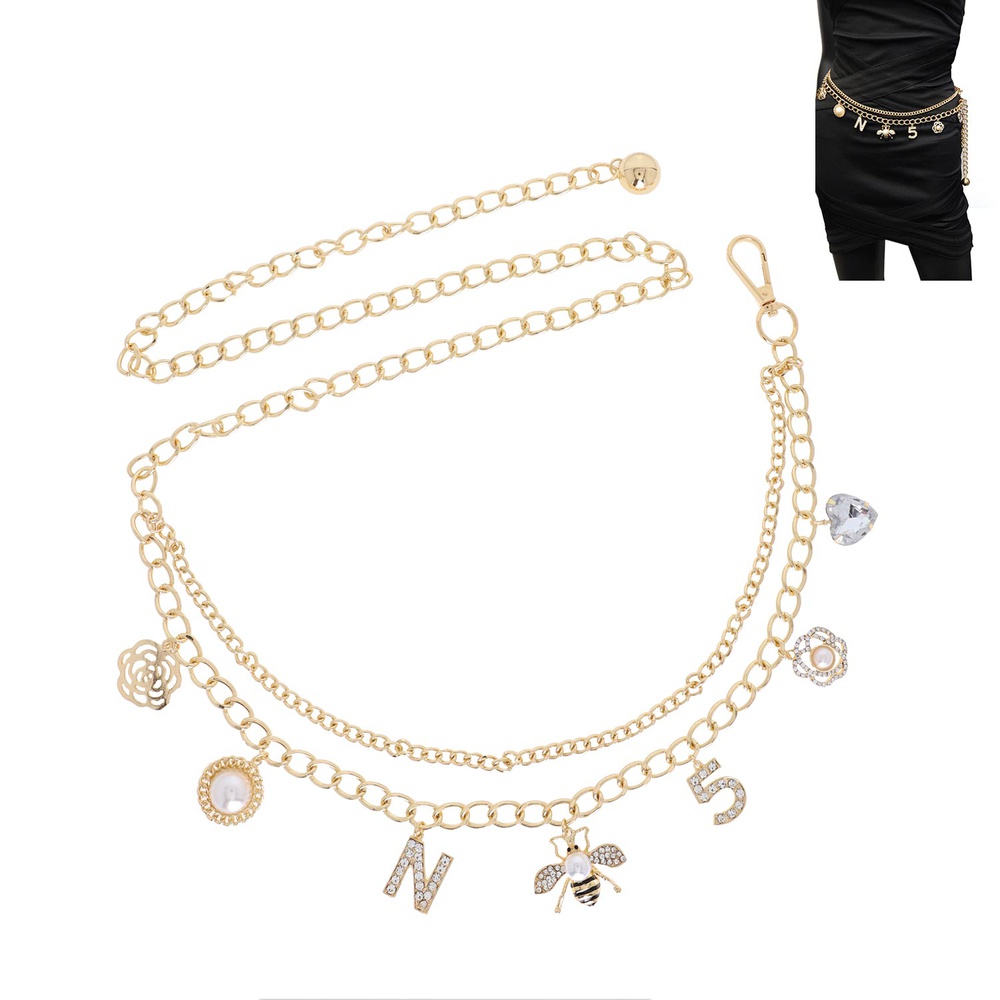 FASHIONISTA HONEY BEE ONE SIZE CRYSTAL RHINESTONE ENAMEL COATED MULTI STRAND CHAIN LINK MULTI CHARM WAIST BELT WITH CLASP CLOSURE
