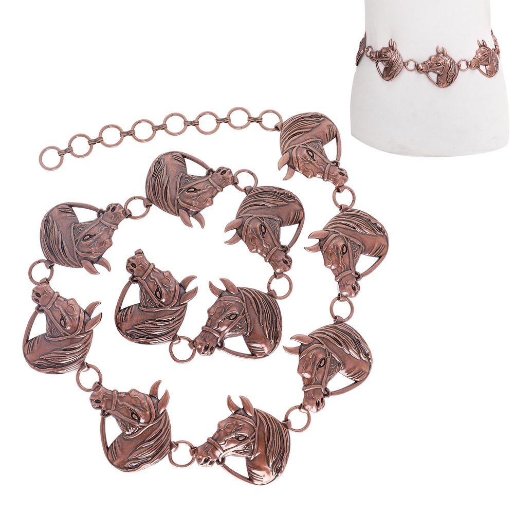 Western Equestrian Horse Head Chain Link Belt