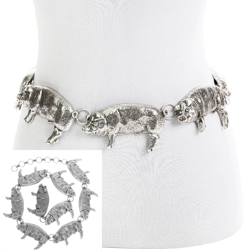 WESTERN PIG SHAPED CHAIN LINK BELT IN OXIDIZED SILVER TONE METAL