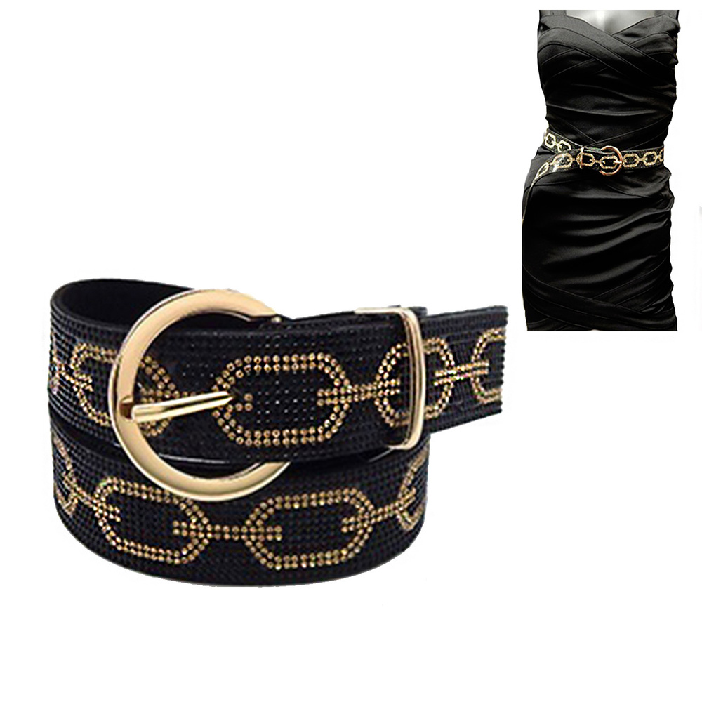 Luxury Designer Inspired Rhinestone Belt In Vegan Leather - Club Party Fashion Belts