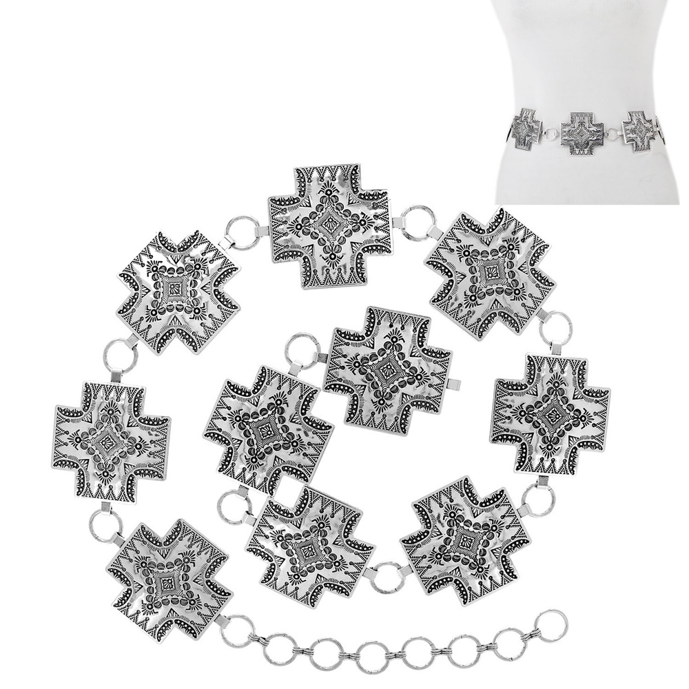 Western Cross Stamped Metal Chain Link Hip Belt