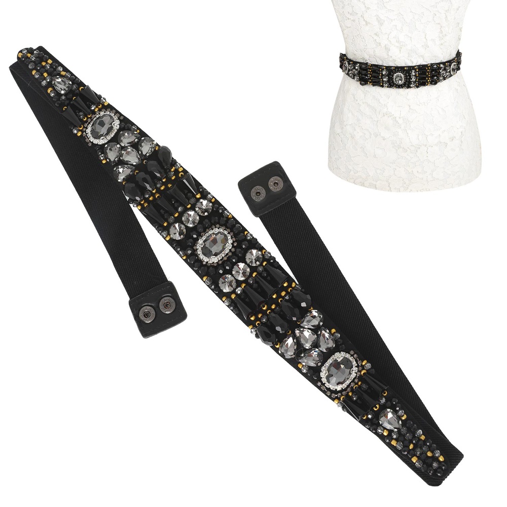 BRIDAL PROM FORMAL CRYSTAL GEMSTONE OCTAGON CUT CLUSTER EMBELLISHED SASH SNAP ELASTIC STRETCH BELT