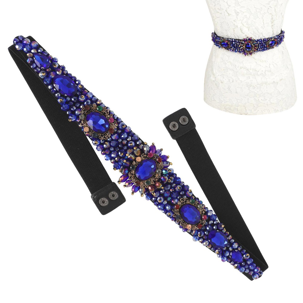 BAROQUE BRIDAL PROM FORMAL FLORAL CRYSTAL GEMSTONE BROOCH EMBELLISHED SASH SNAP ELASTIC STRETCH BELT