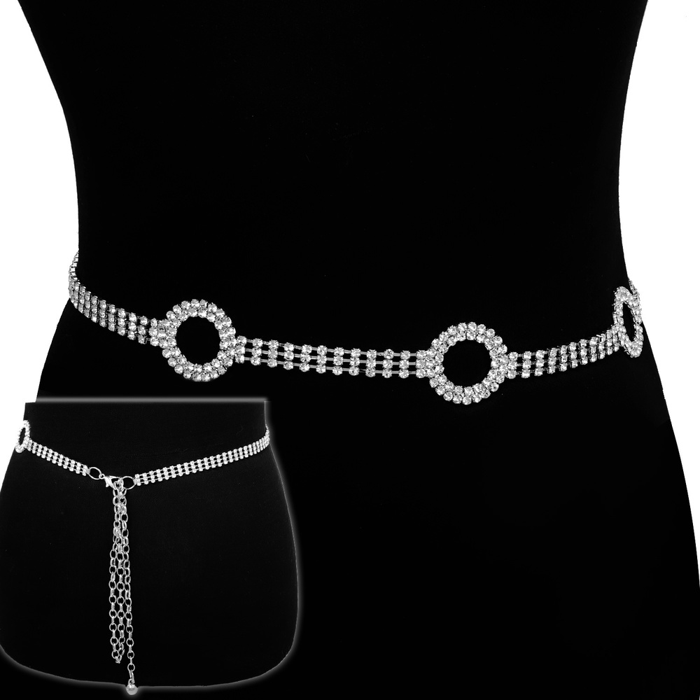 Crystal Rhinestone One Size Open Circle Waist Chain Belt With Clasp Closure