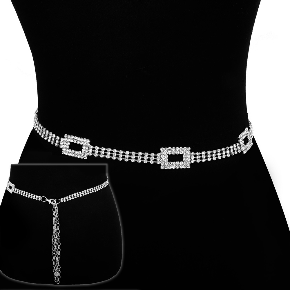Crystal Rhinestone One Size Open Rectangle Waist Chain Belt With Clasp Closure