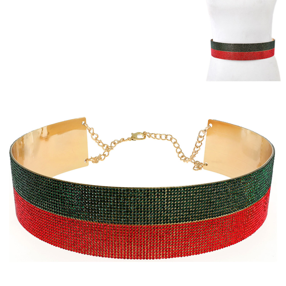 GREEN AND RED RHINESTONE METAL MIRROR WAIST CHAIN BELT