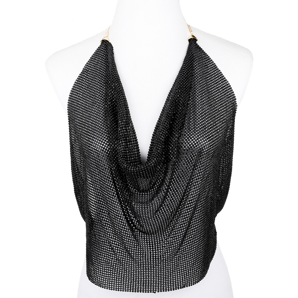 Rhinestone Mesh Camisole Top Body Chain Necklace