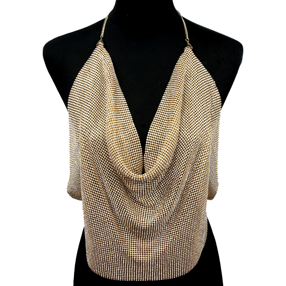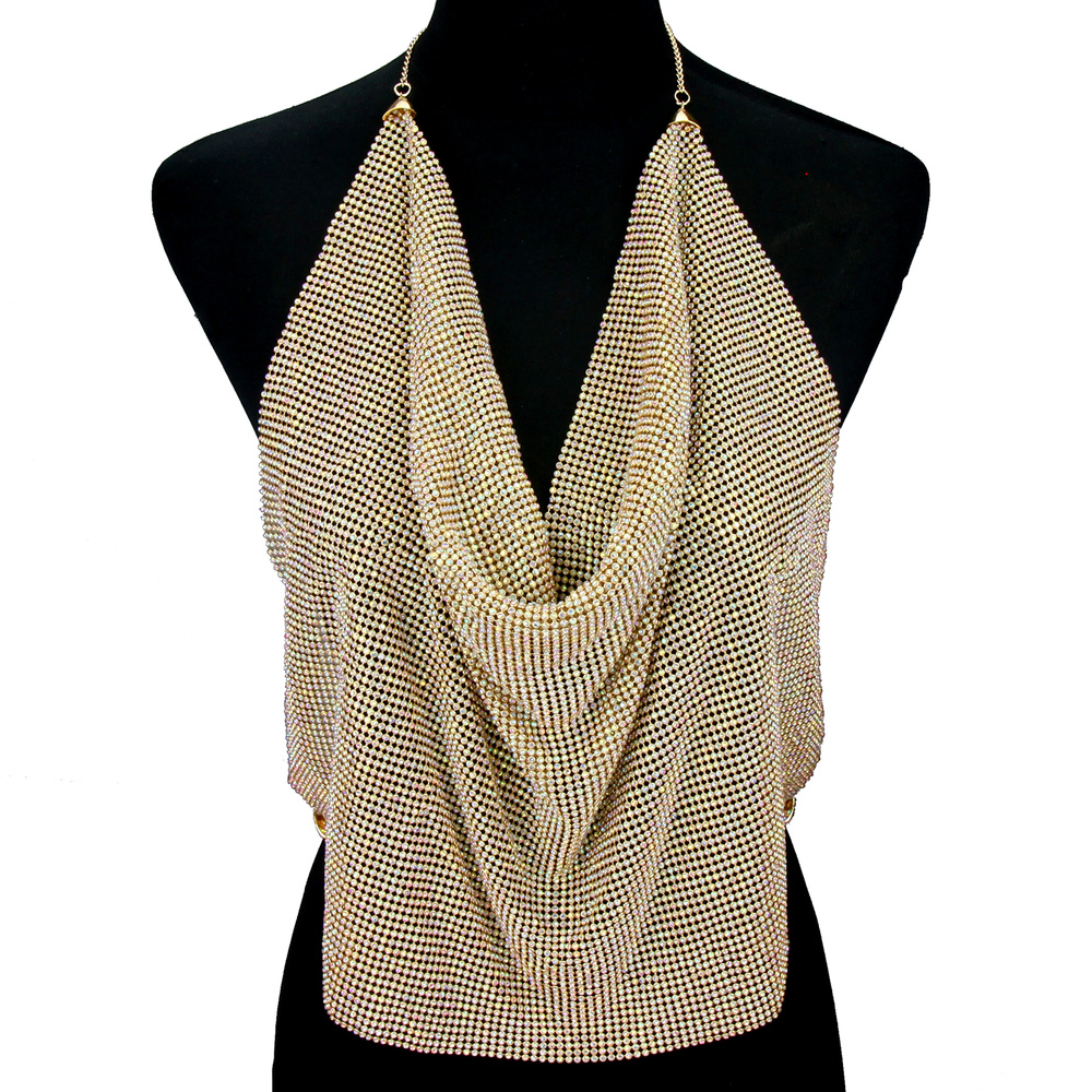 RHINESTONE MESH CAMISOLE TOP BODY CHAIN NECKLACE