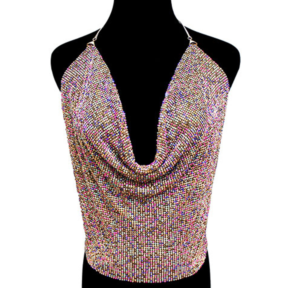 Rhinestone Mesh Camisole Top Body Chain Necklace