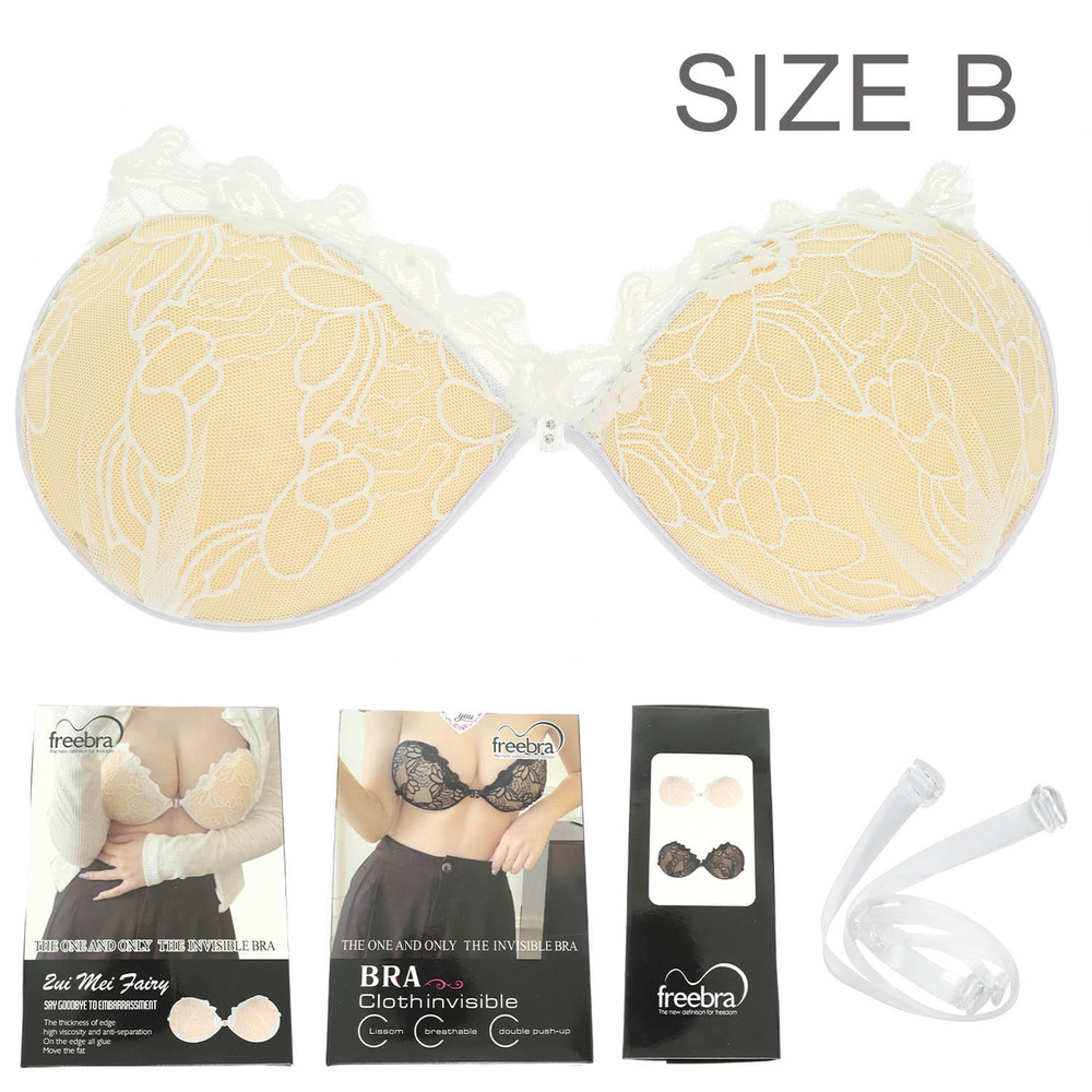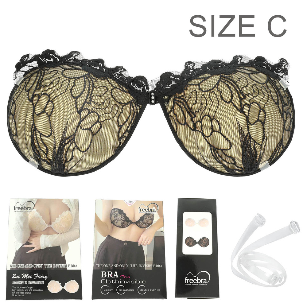 WOMEN'S STRAPLESS CHANTILLY LACED PUSH UP BRA WITH SILICONE PADDING AND BONDED ADHESIVE