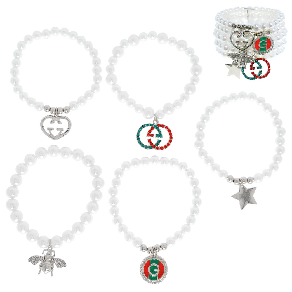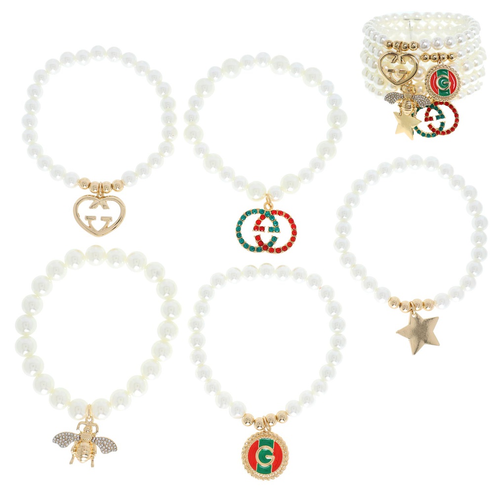 5-PACK FASHIONISTA HONEY BEE BEADED ENAMEL COATED CHARM STRETCH STACKABLE BRACELET SET