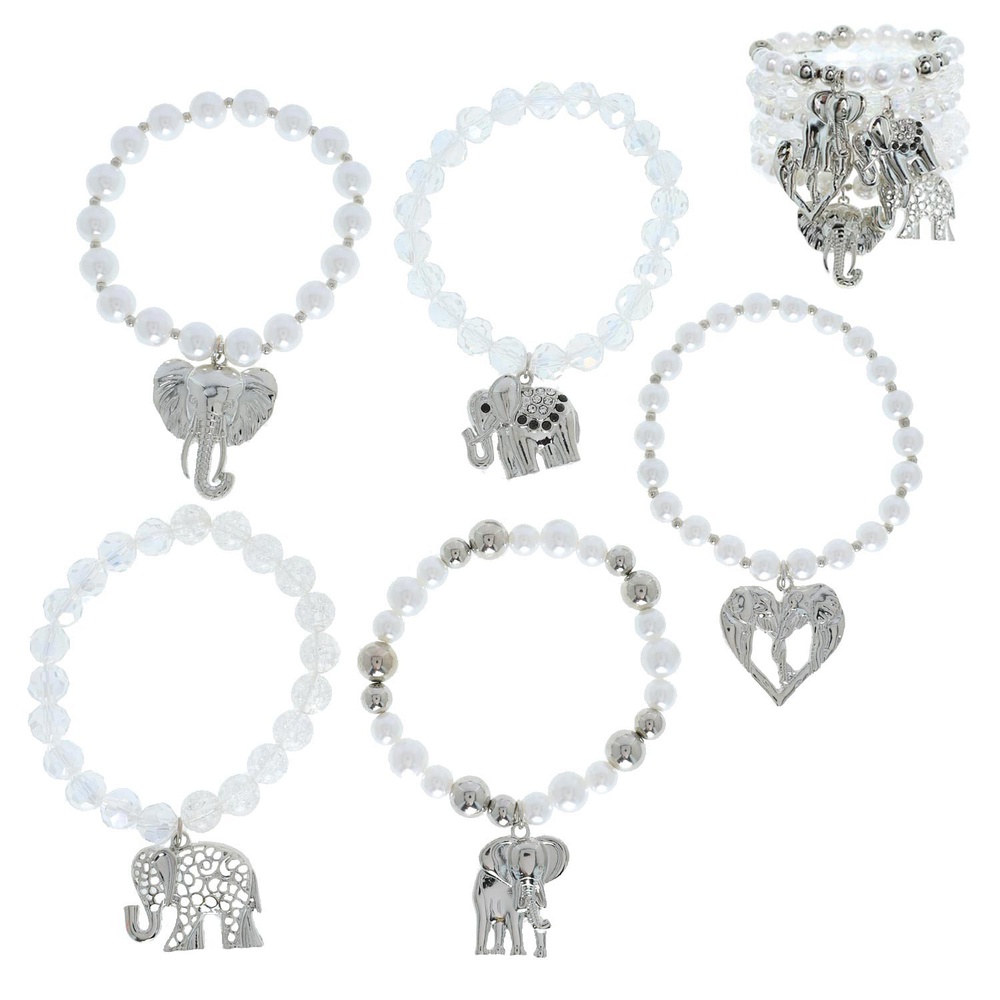 Elephant Beaded Charm Stretch Bracelet Set
