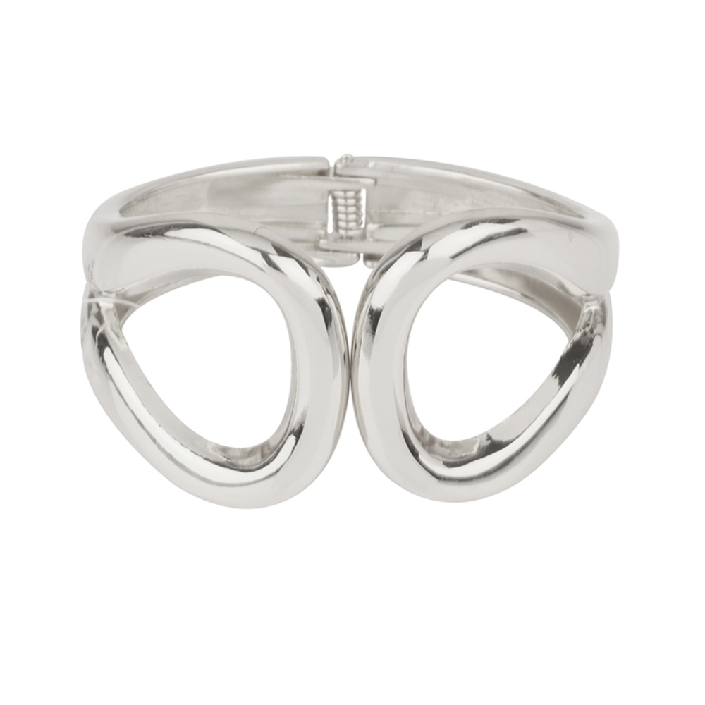 POLISHED OPEN INLAY HINGED BANGLE BRACELET IN SILVER-TONE METAL