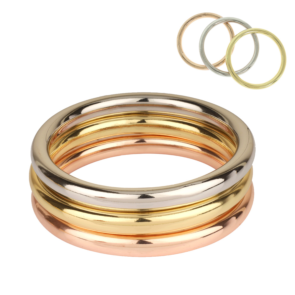 3PC POLISHED MULTI-LAYER BANGLE BRACELET SET IN ROSE, SILVER, AND GOLD TONE METAL