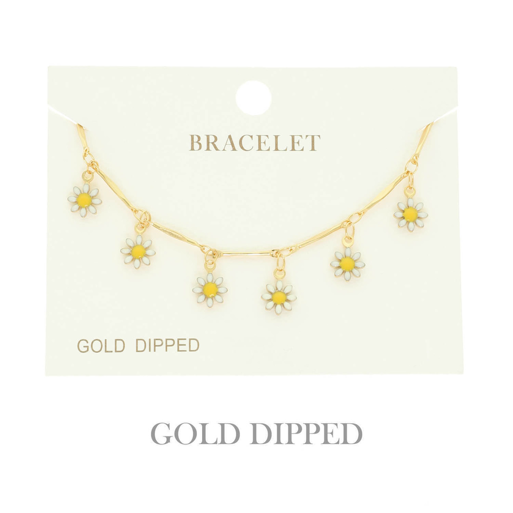 POLISHED DAISY FLOWER CHARM BRACELET IN YELLOW GOLD PLATING