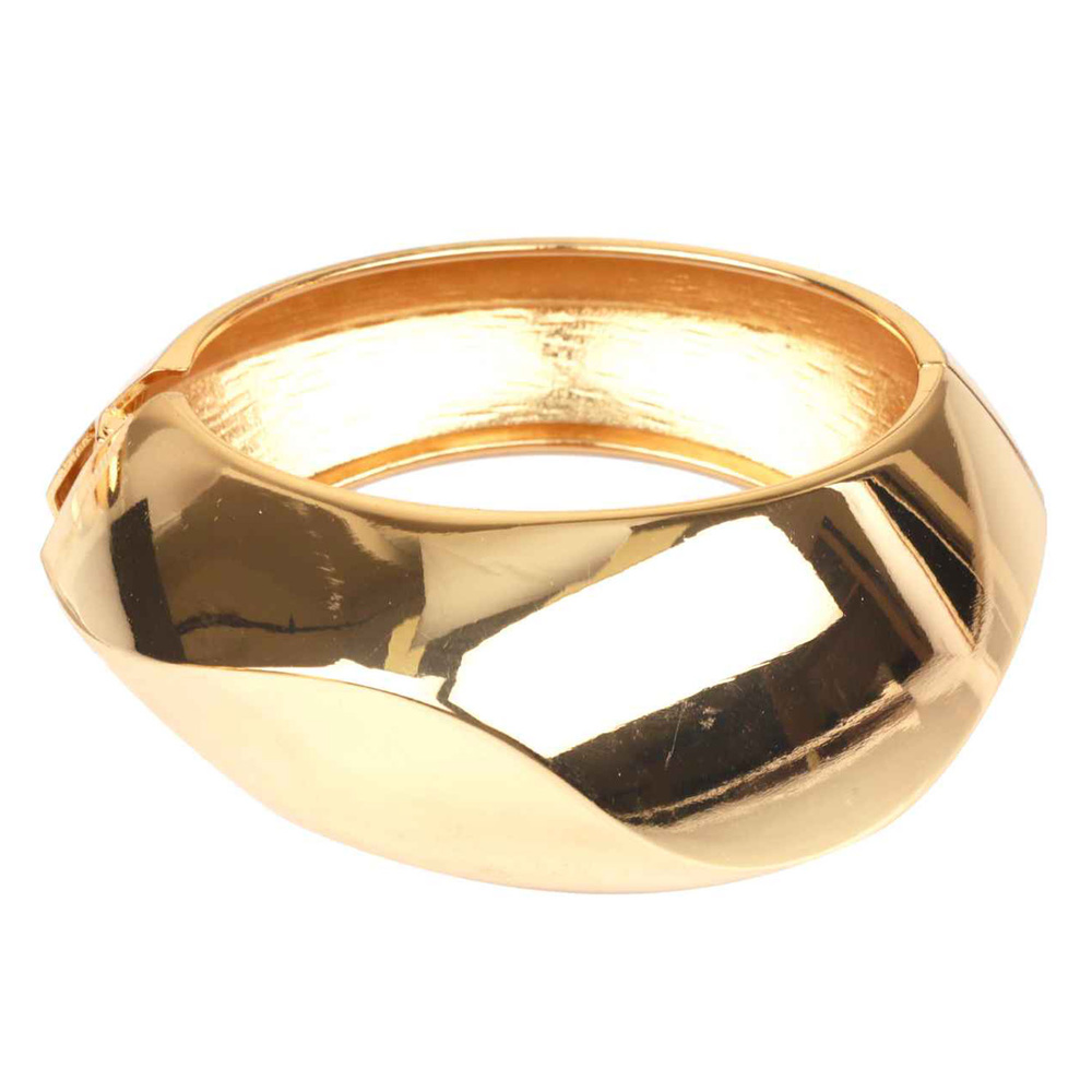 POLISHED FACETED HINGE BRACELET IN GOLD TONE METAL