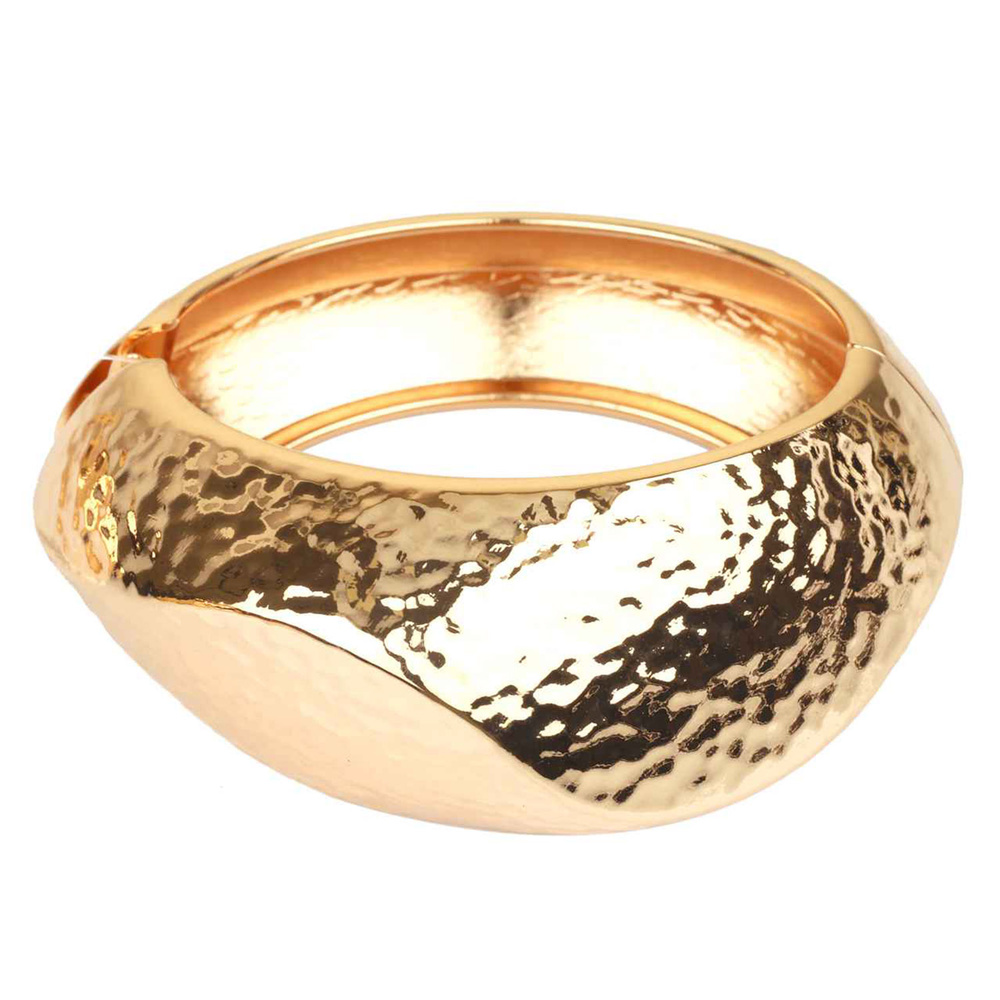 HAMMERED FACETED HINGE BRACELET IN GOLD TONE METAL