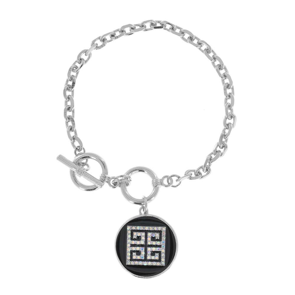 RHINESTONE PAVE GREEK KEY SQUARE ENAMEL COIN CHARM TOGGLE BRACELET
