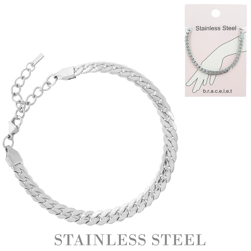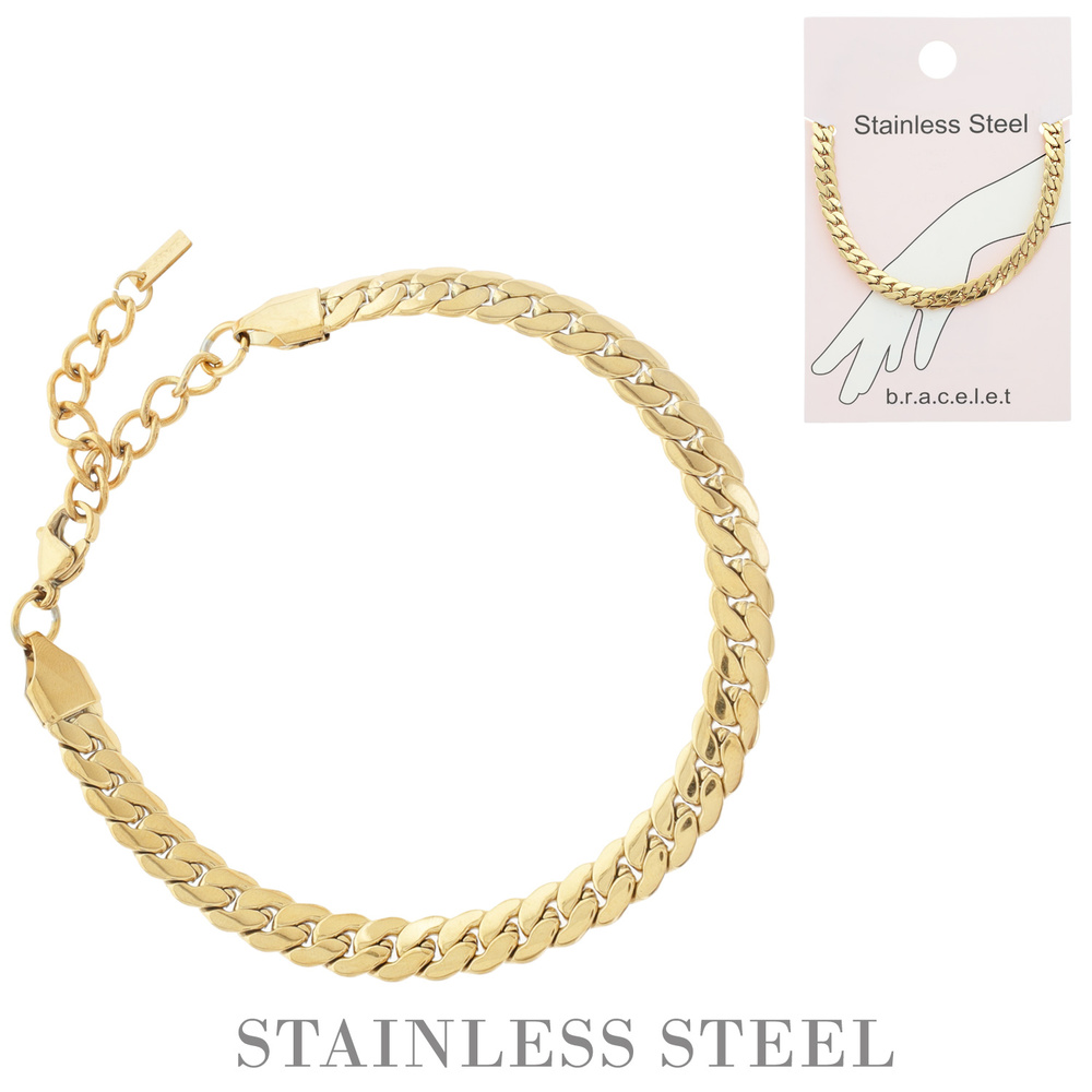 CUBAN CURB CHAIN LINK ADJUSTABLE BRACELET IN GOLD AND SILVER TONE STAINLESS STEEL