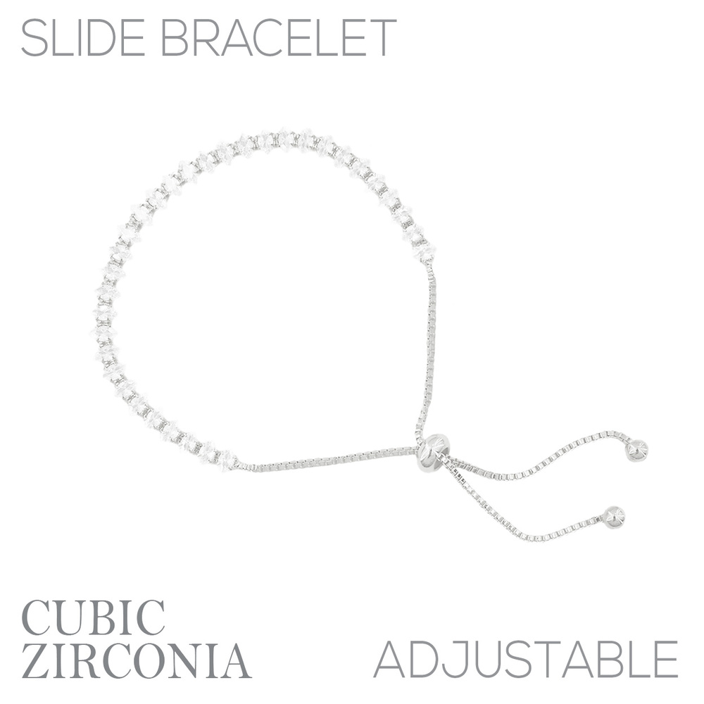 CUBIC ZIRCONIA TENNIS SET BOLO SLIDER BRACELET IN SILVER TONE METAL