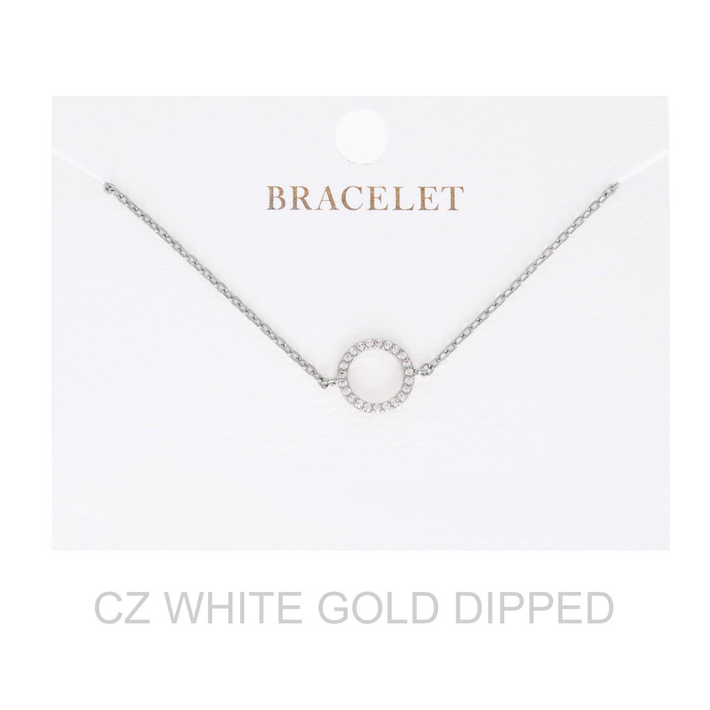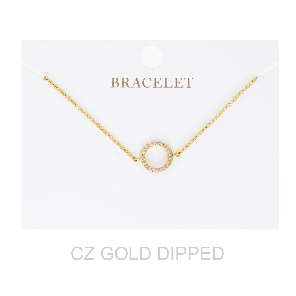 WOMEN'S GOLD DIPPED CUBIC ZIRCONIA OPEN CIRCLE LINK ADJUSTABLE CHAIN BRACELET