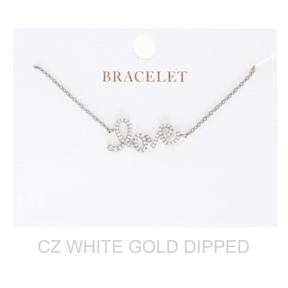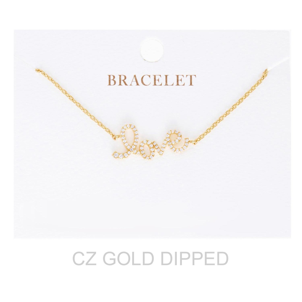 WOMEN'S GOLD DIPPED CUBIC ZIRCONIA CURSIVE "LOVE" LINK ADJUSTABLE CHAIN BRACELET