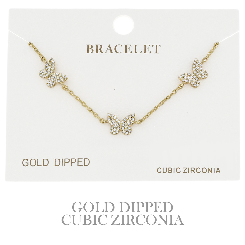Cubic Zirconia Pave Butterfly Adjustable Bracelet In Yellow Gold And White Gold Plating