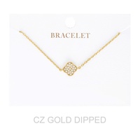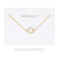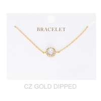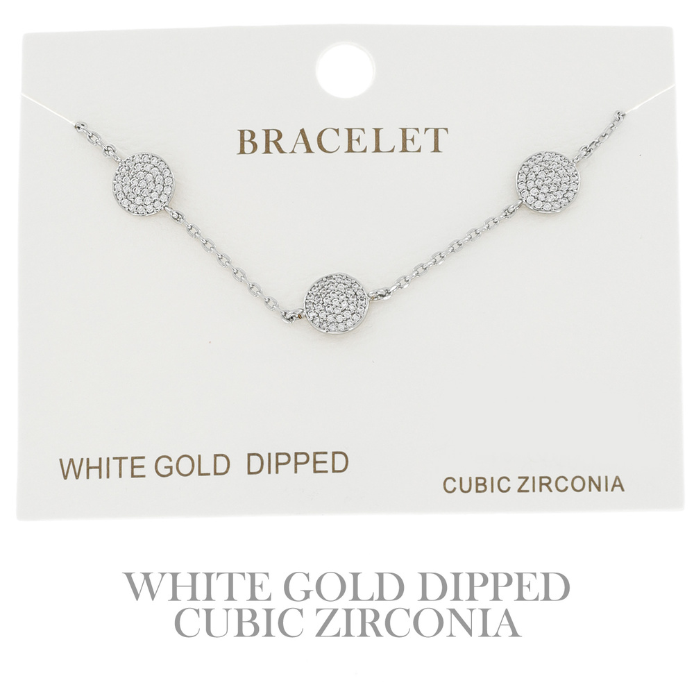 CUBIC ZIRCONIA PAVE DISC ADJUSTABLE BRACELET IN YELLOW GOLD AND WHITE GOLD PLATING