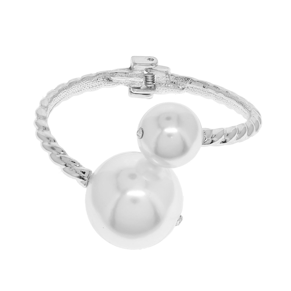 TWO PEARL ASYMMETRICAL CABLE CUFF BRACELET
