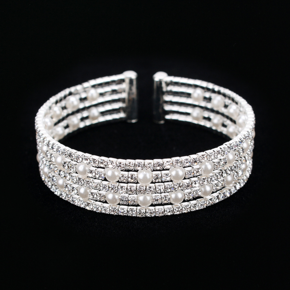 5 LINE PEARL W/RHINESTONE CUFF BR
