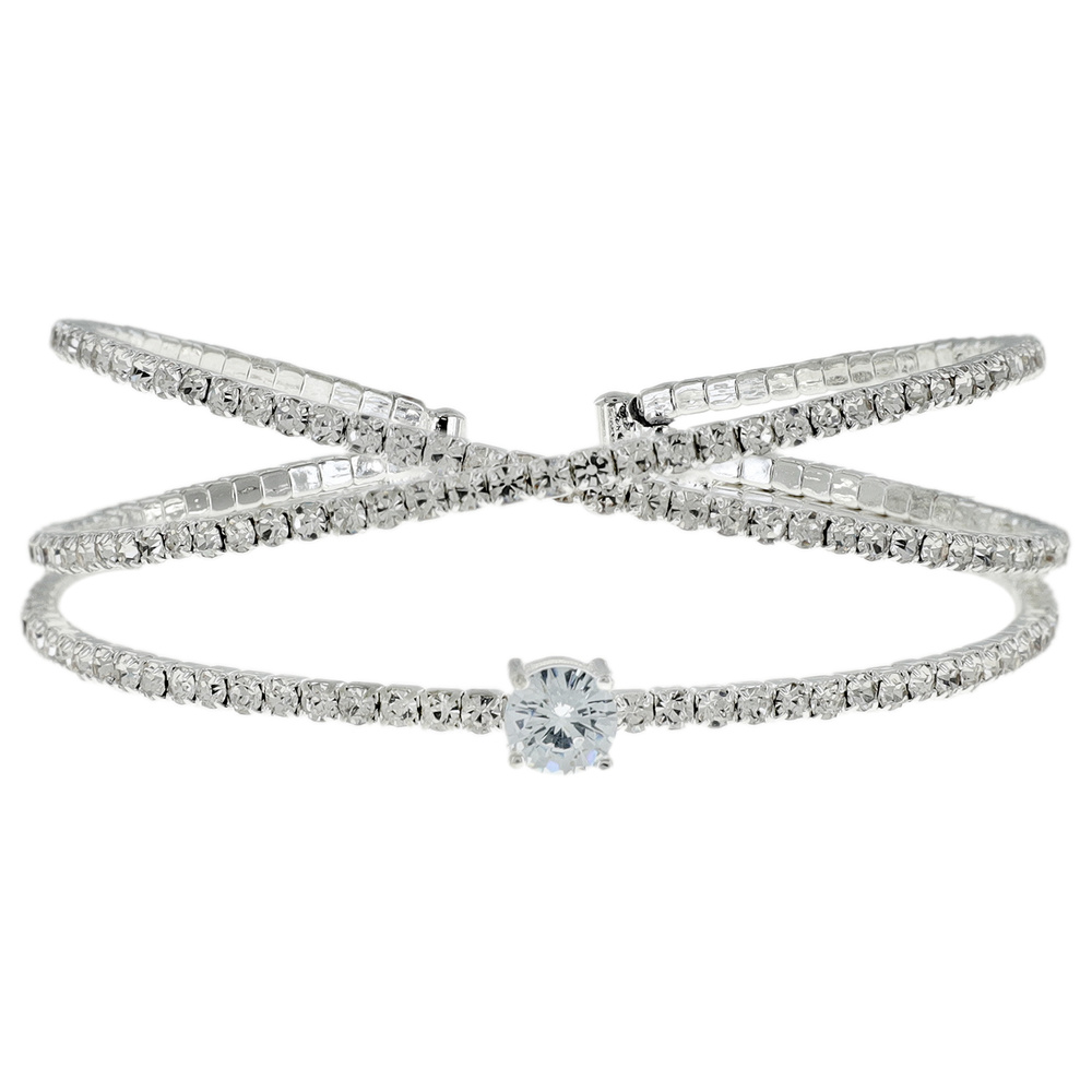 Bridal Crystal Rhinestone Multilayer 3 Row Criss Cross Solitaire Cuff Bracelet