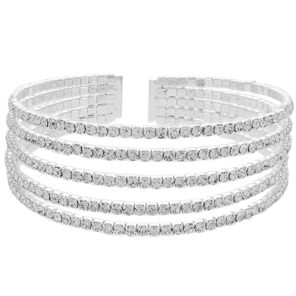 Bridal 5-line Crystal Rhinestone Cuff Bracelet