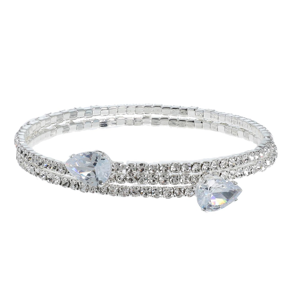 CRYSTAL RHINESTONE TEARDROP GEMSTONE FOREVER WRAP AROUND BANGLE BRACELET IN SILVER TONE METAL