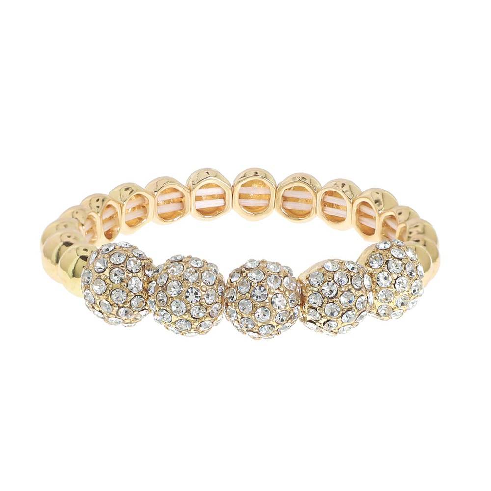 Crystal Rhinestone Pave Sphere Beaded Stretch Layering Bracelet