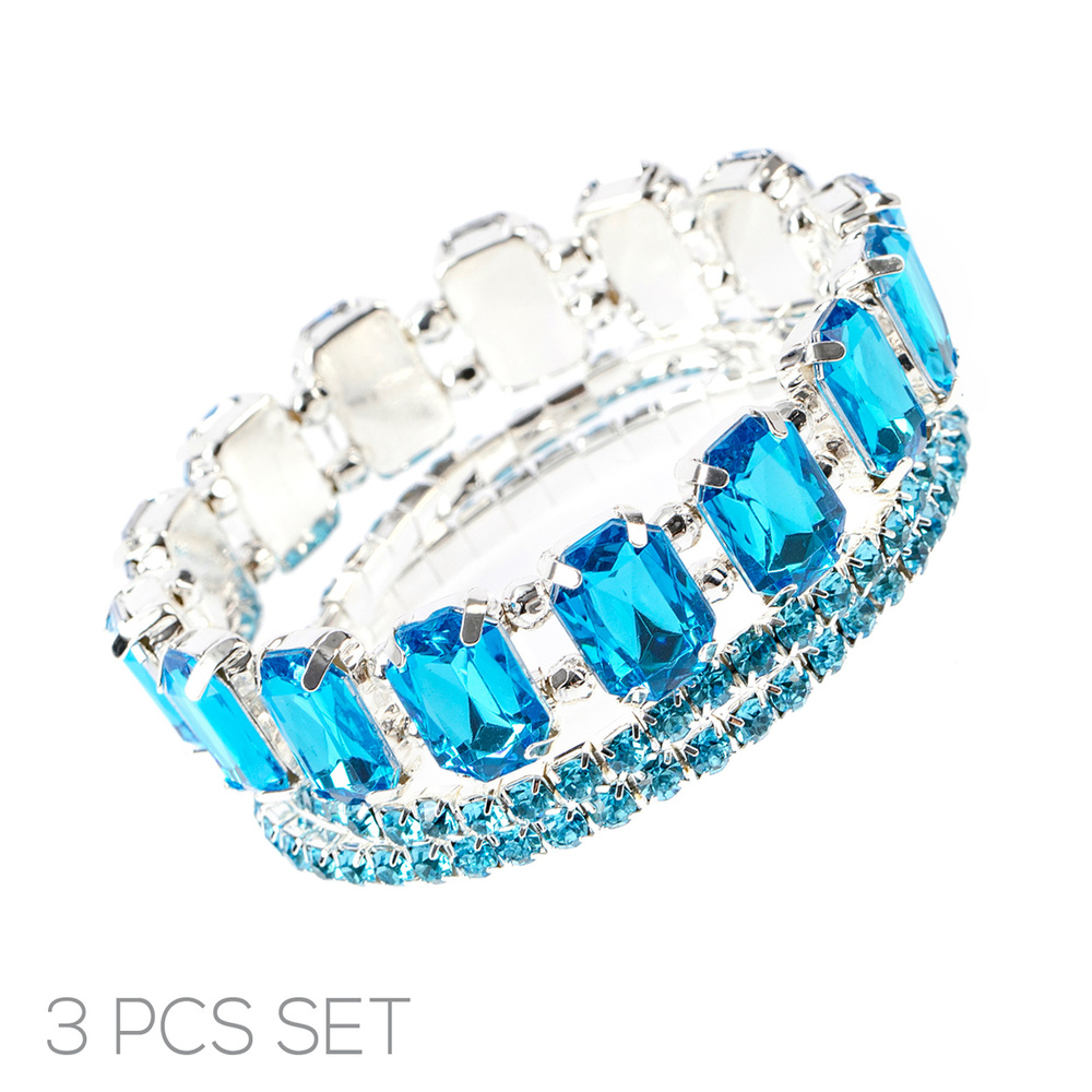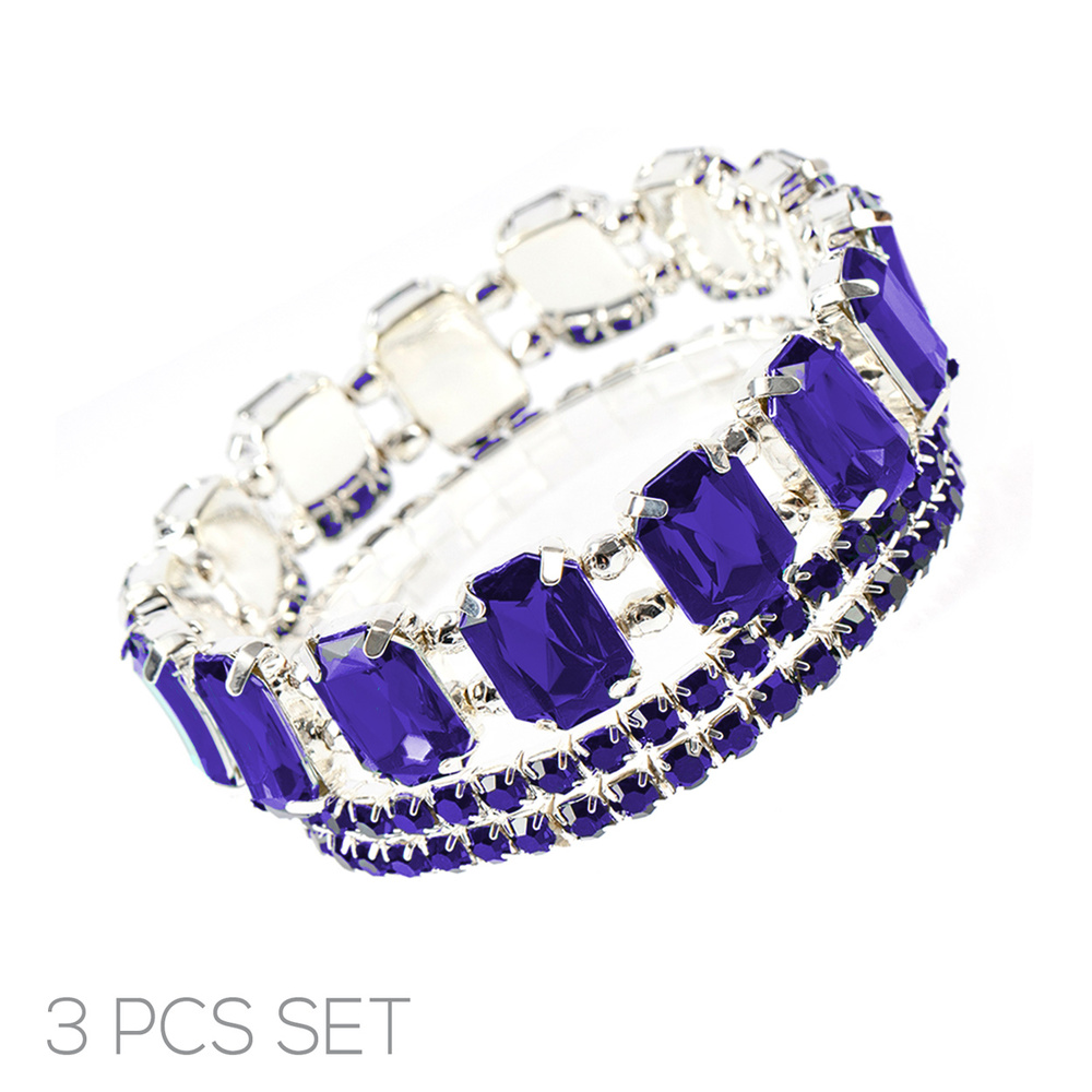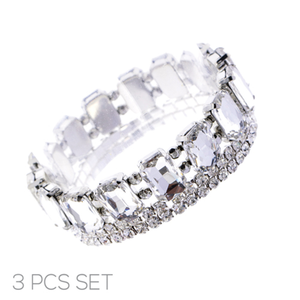MULTI-CUT PRONG-SET CRYSTAL BRACELET STACK IN GOLD-TONE AND SILVER-TONE METAL (3PC)