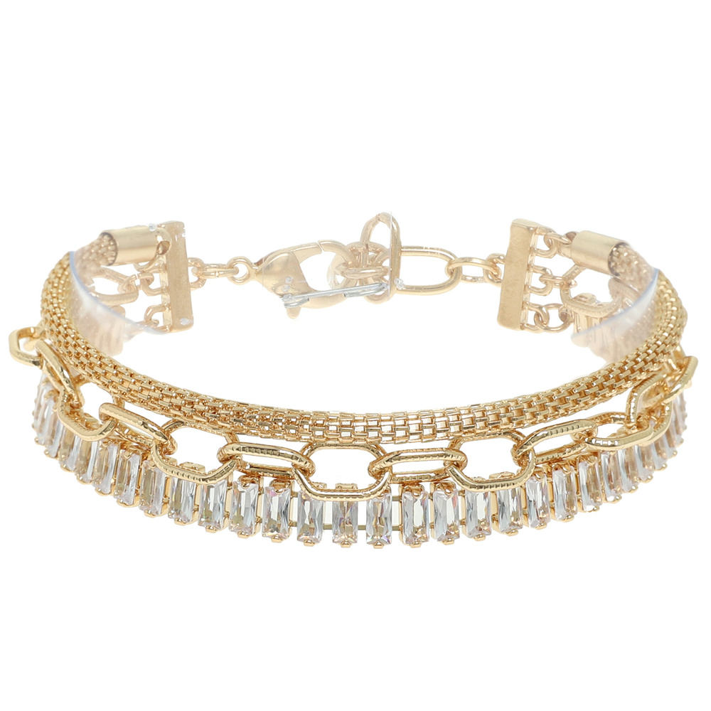 3-ROW GOLD-TONE MIXED CHAIN CRYSTAL BRACELET