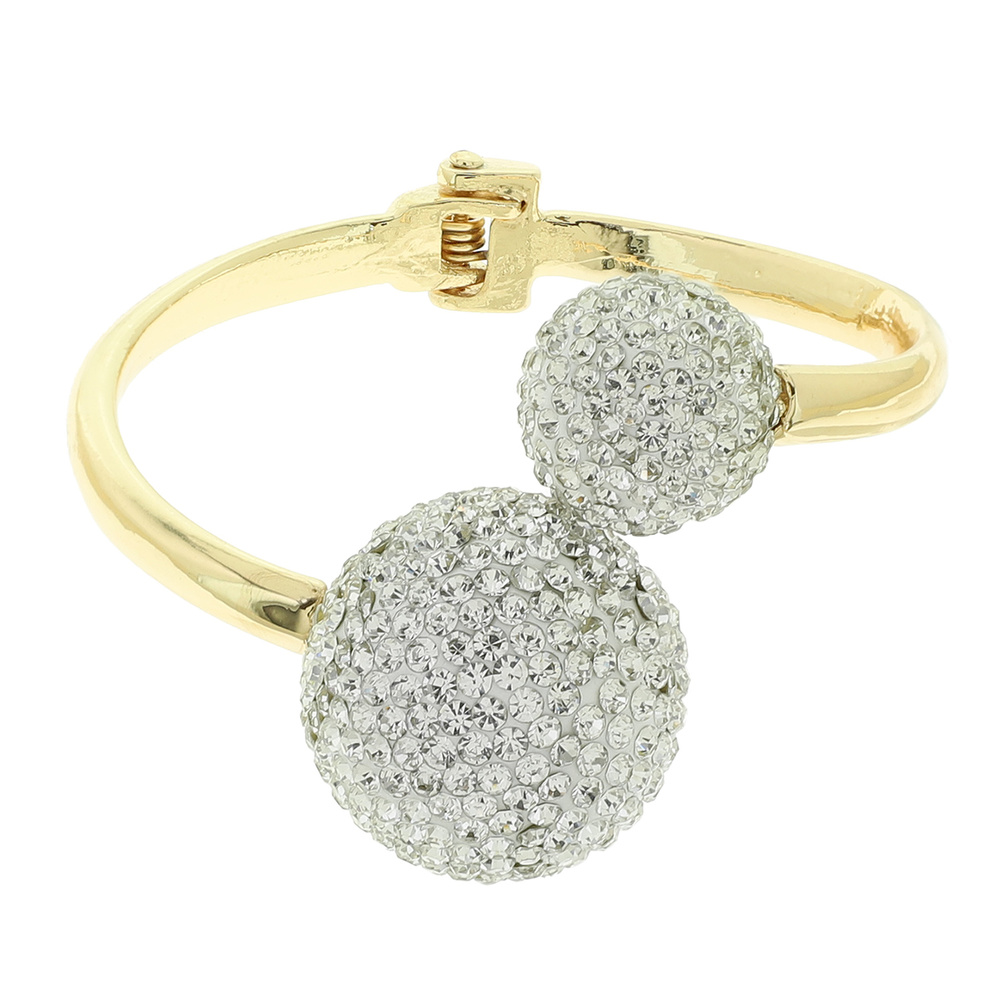 Rhinestone Pave Ball Open Hinge Bracelet