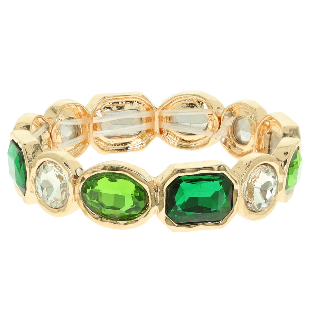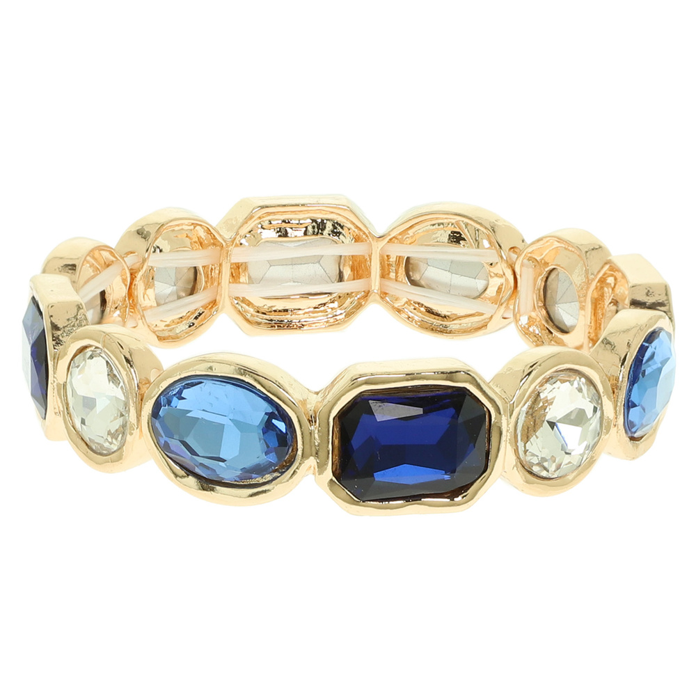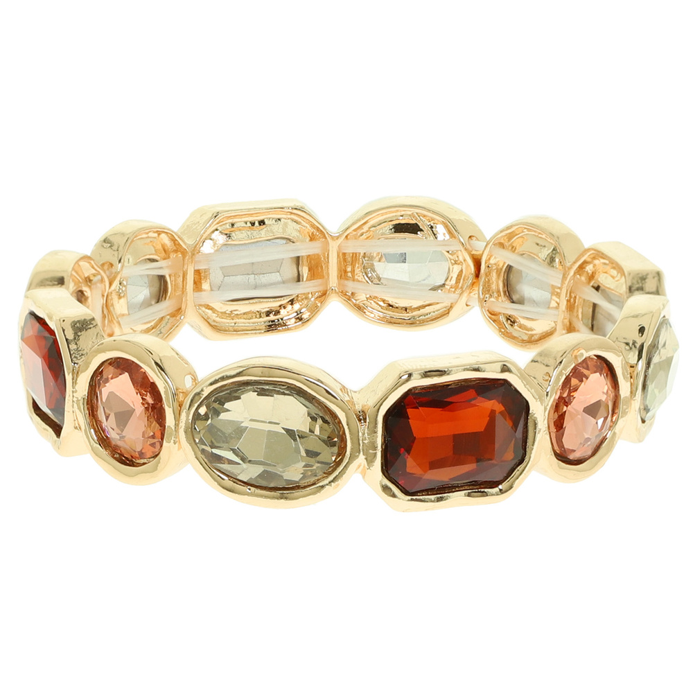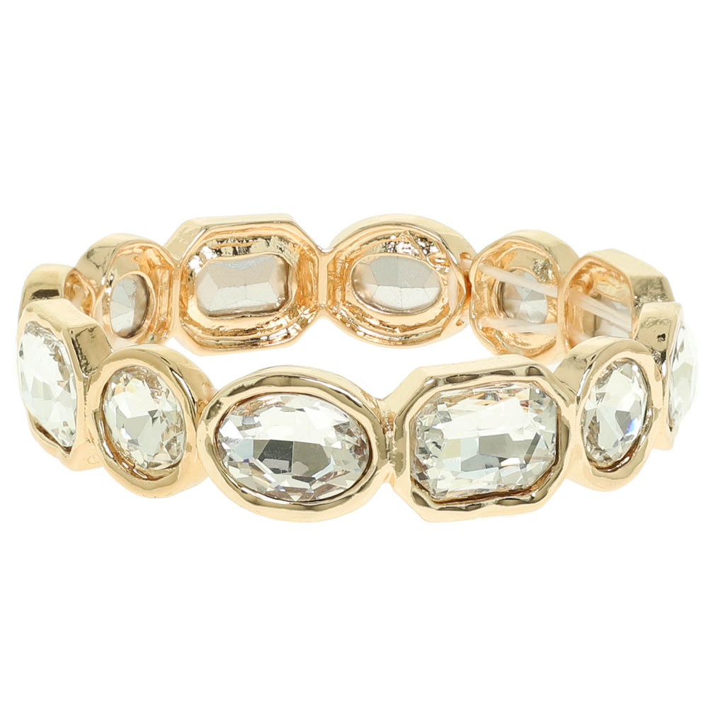 BEZELED-SET CRYSTAL STRETCH BRACELET IN GOLD TONE AND SILVER TONE METAL