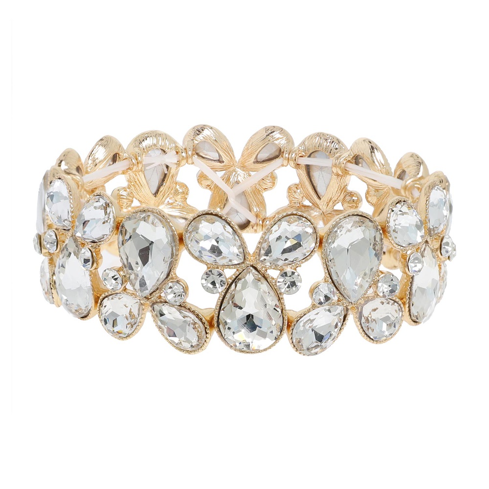 2-ROW CRYSTAL RHINESTONE TEARDROP CUT CLUSTER STRETCH BANGLE BRACELET