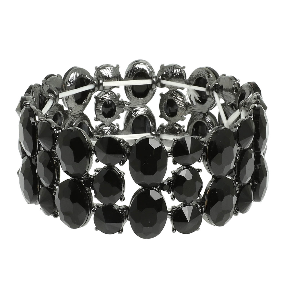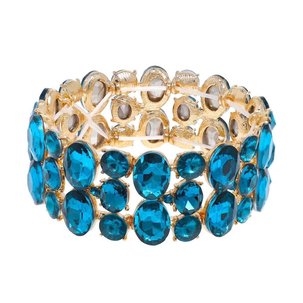 MULTI-ROW CRYSTAL EMBELLISHED STRETCH BRACELET IN GOLD-TONE METAL